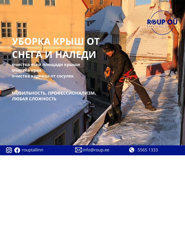 Рекомендую профессиональных специалистов - высотников от Roup OÜ. Зима - пора почистить крышу от снега и наледи.